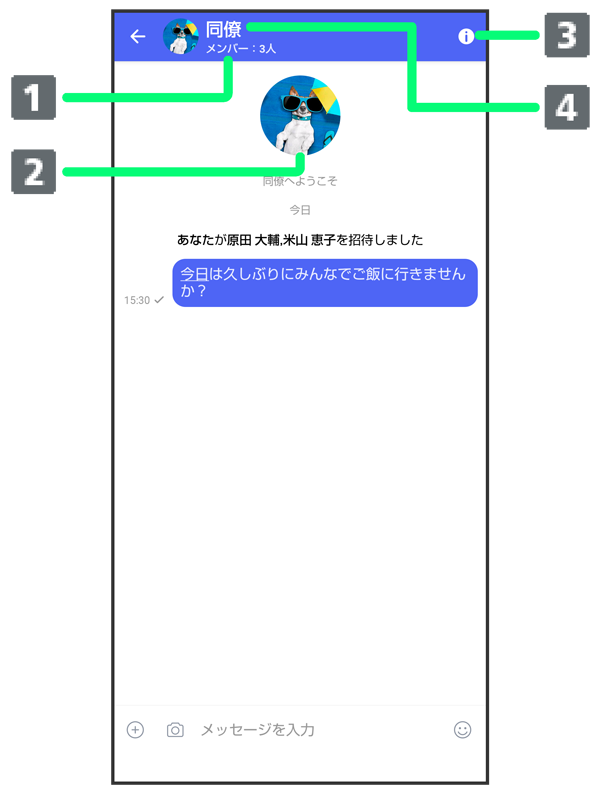 グループメッセージ画面の見かた