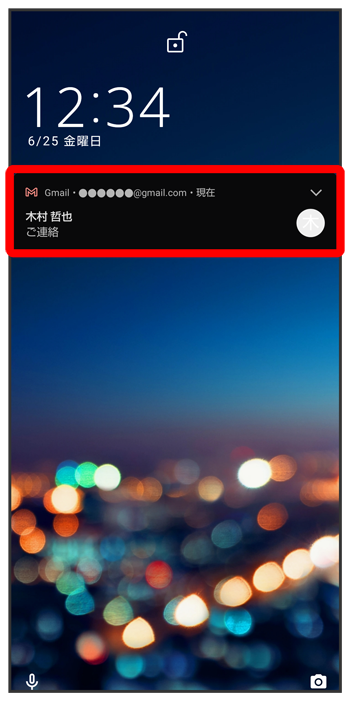 新着メールを受信すると、ロック画面に新着メッセージ通知が表示されます。