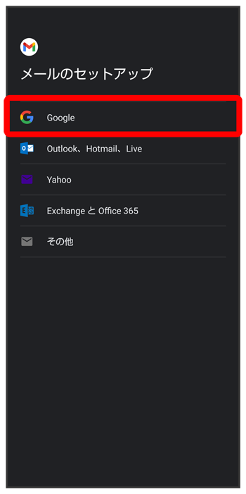 ここでは、Google アカウントを追加する方法を例に説明します。