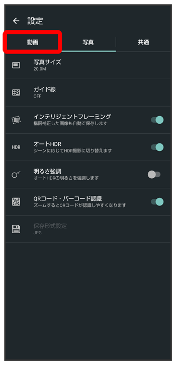 動画撮影の設定をする
