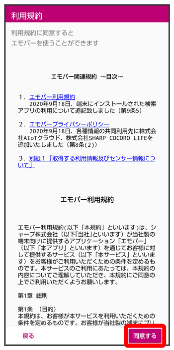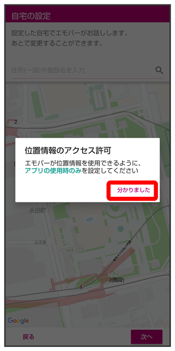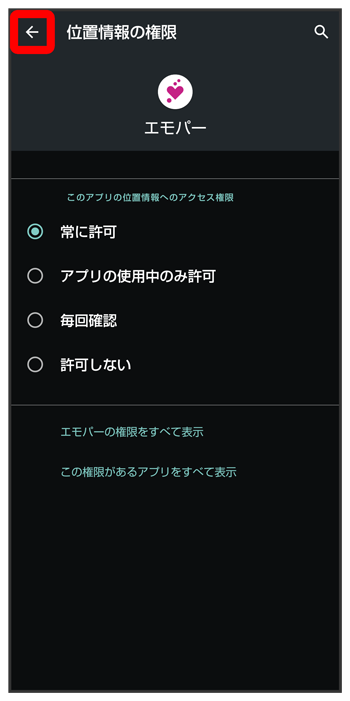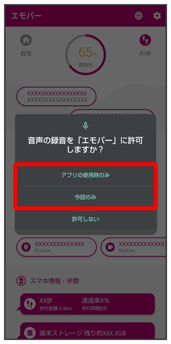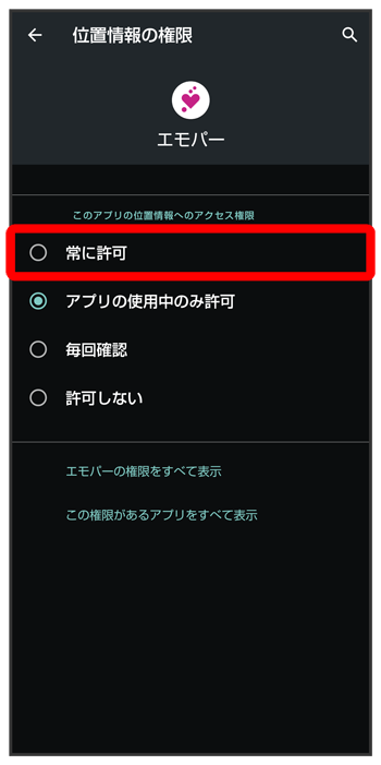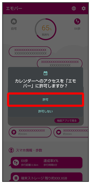 エモパーに許可の設定画面が表示されたら