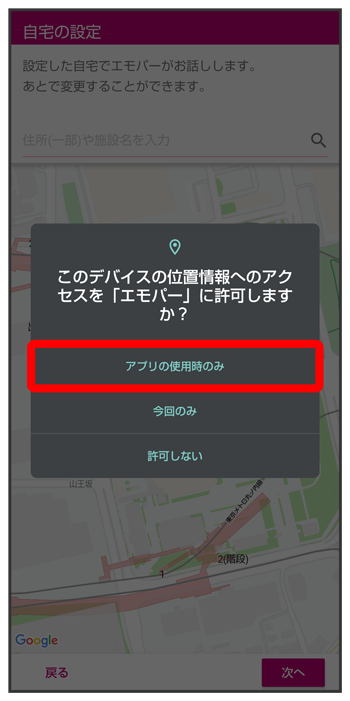 位置情報のアクセス許可画面が表示されたら