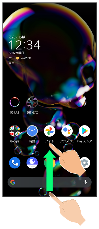 - アプリ一覧画面では、画面下部から上にドラッグしても、アプリの使用履歴画面は表示されません。