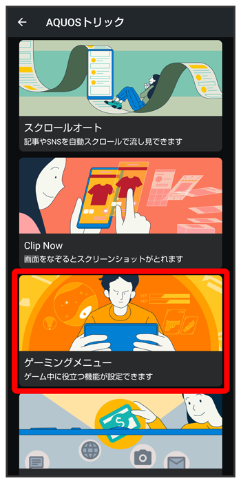 | 使い方ガイド | ゲーミングメニューの使い方を確認できます。 |