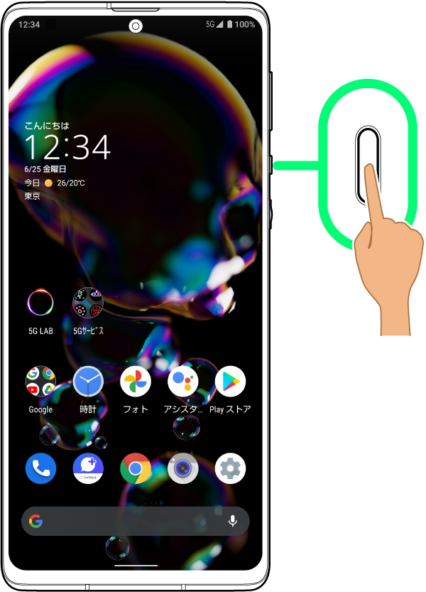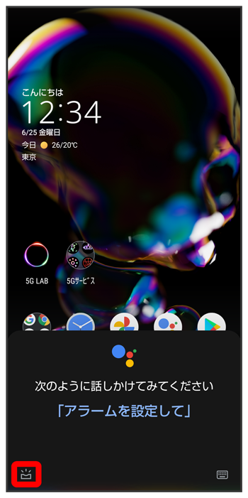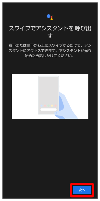 (アシスタント)をタップするか、画面右下または左下から斜め上にフリックしても、