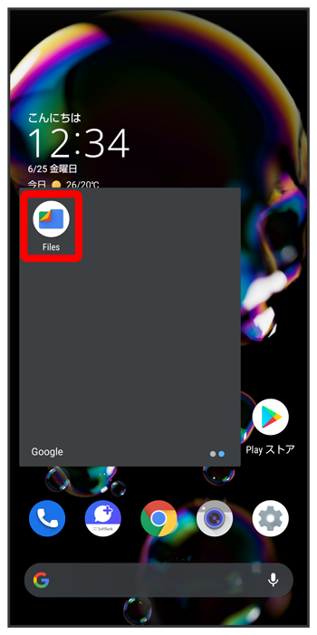 ダウンロード画面で、ファイルをロングタッチ- リスト表示でファイル名の右の