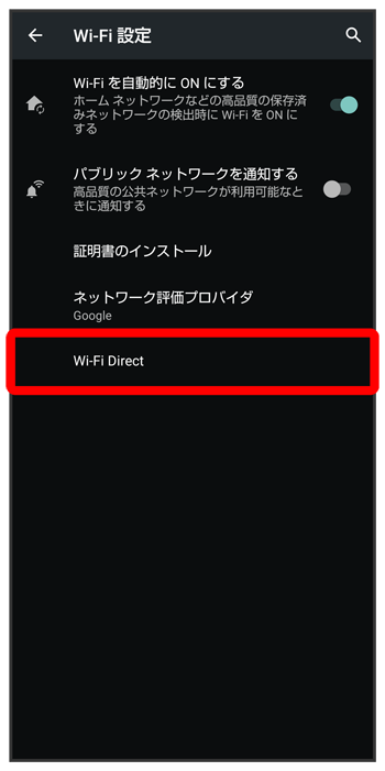 「ピアデバイス」欄に、近くにあるWi-Fi Direct規格対応機器が表示されます。