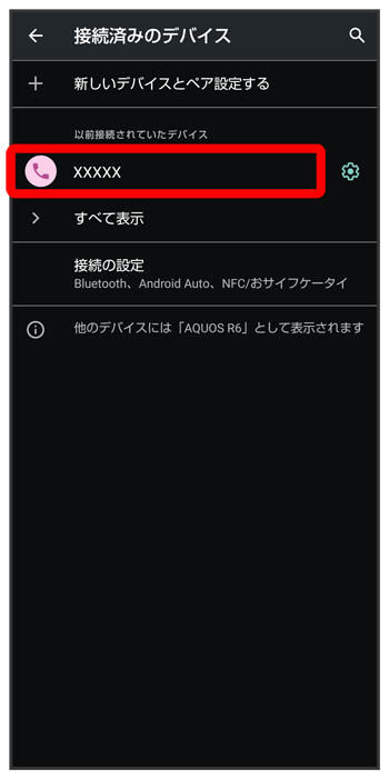 接続済みのデバイス画面で、ペア設定を解除する機器のこちらで検索できます