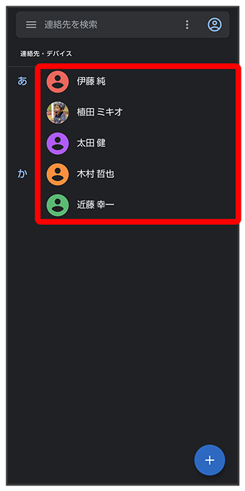 連絡帳画面で連絡先をロングタッチ送信したい連絡先をタップ(