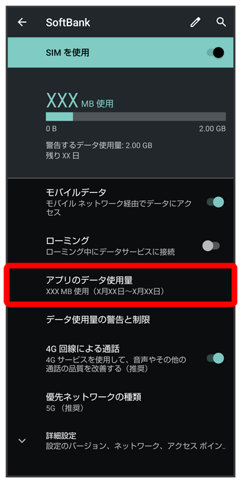 アプリのデータ使用量を確認する