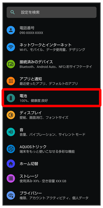 長エネスイッチ画面でバーをドラッグして電池残量を調節- 設定を解除するときは、をタップします。