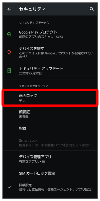 - 変更前の画面ロック解除方法がまたは以外のときは、ロックを解除する操作が必要です。