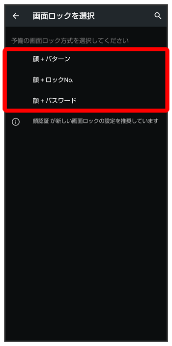 - 顔認証ができないときの予備の画面ロック解除方法になります。