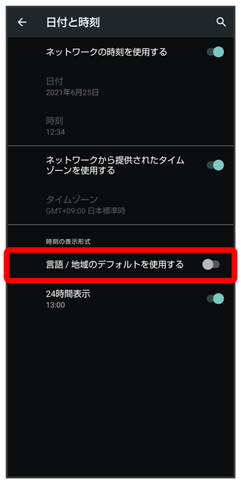 ユーザーの言語/地域の標準に従って24時間表示/12時間表示が自動設定されます。