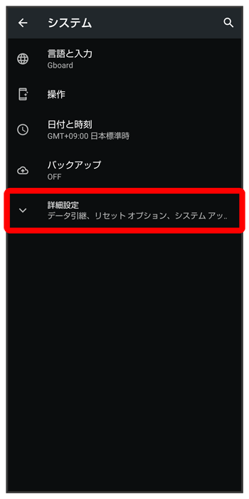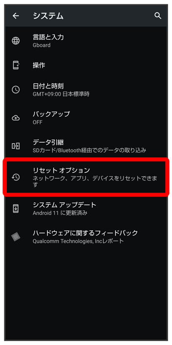 - すべてのデータを消去(出荷時リセット)を行うと、内部ストレージのデータがすべて消去されます。必要なデータは事前にバックアップをとることをおすすめします。