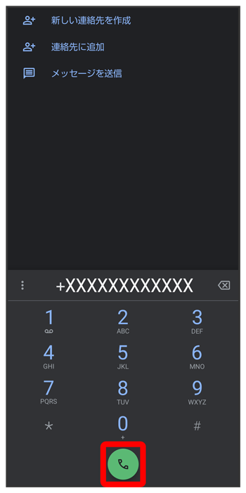国番号のあとに相手の電話番号(先頭の「0」を除く)を入力