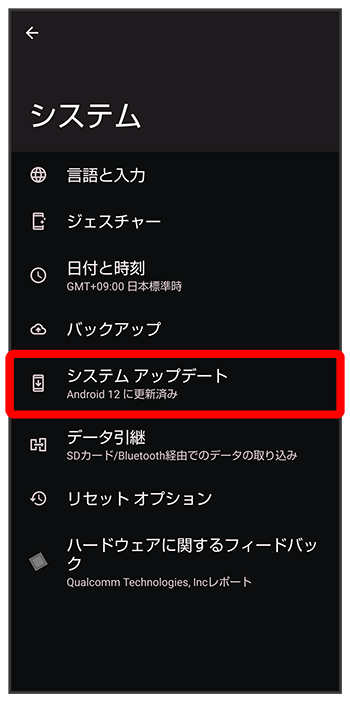 - システムアップデートが進むと最後にが表示されます。タップして、システムアップデートを完了させてください。