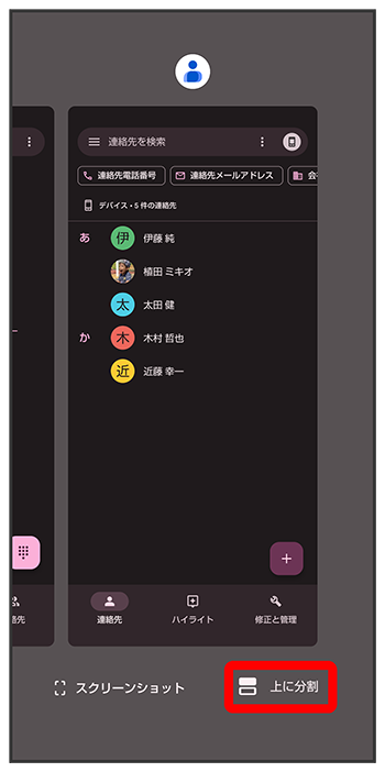 選択したアプリが画面の上下に表示されます(マルチウインドウ画面)。