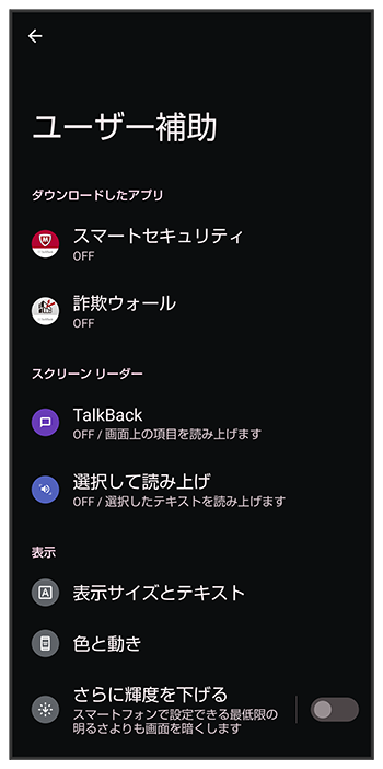 | 操作のコントロール | /が移動されます。 にが追加され、片手で操作しやすいように画面の上半分を下に移動させるかどうかなどを設定できます。 がに変更されます。が追加され、電話着信時やキーボードをタップしたときなどにバイブレータを動作させるかどうかを設定できます。//が追加されます。 そのほかの項目が一部変更されます。 |