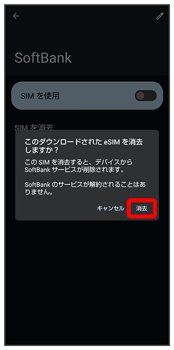 eSIMが消去されます。