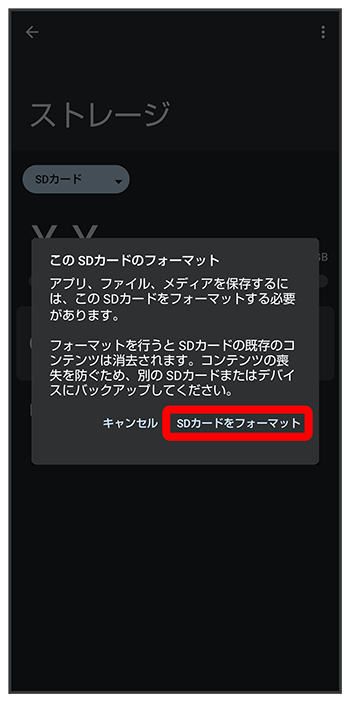SDカード内のデータがすべて消去されます。