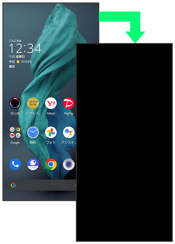 - 画面点灯時に電源キーを押すと、手動で画面ロック状態にすることができます。