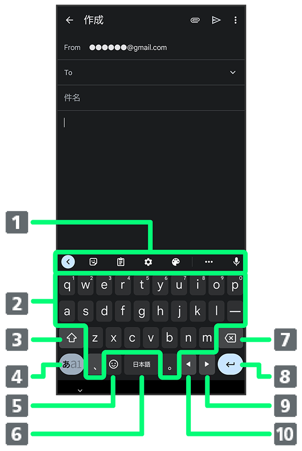 - 表示するアイテムを変更することもできます。詳しくは、「ツールバーについて(Gboard)」を参照してください。