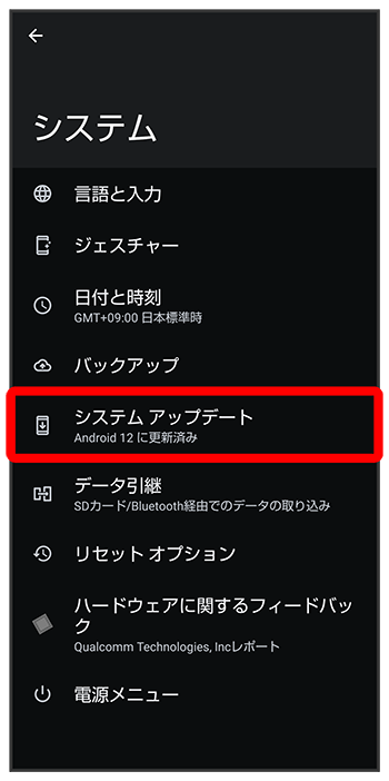 システムアップデートが必要なときは、通知が表示されます。通知をタップし、画面に従って操作してください。通知が表示されない場合などは、次の手順で必要かどうかを確認してアップデートできます。