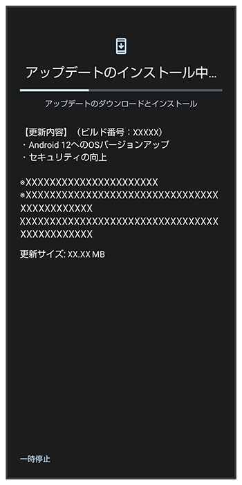 - システムアップデート中も他の機能を使用できます。ただし、システムアップデートの通知後10日間は、システムアップデート中に他の機能を使用していると、アップデートのインストールが一時的に停止されます。をタップすると、インストールが再開され、他の機能も使用可能になります。