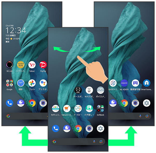各シートを左右にフリックすると、ホーム画面シートを切り替えることができます。