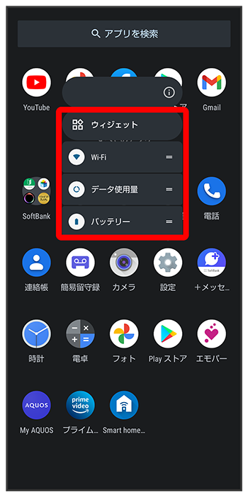 アプリ一覧画面でアプリをロングタッチし、「ホーム画面に追加」までドラッグ