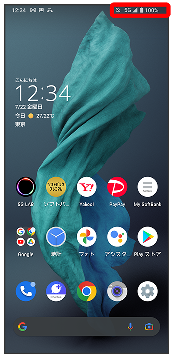 - お使いの端末画面上(画面上部)に待ち受け時は「5G」と表示されている場合でも、通信を行う際は表示が「4G」に切り替わり、4G通信が使用される場合があります。