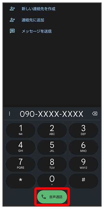 ダイヤルキーをタップして相手の電話番号を入力