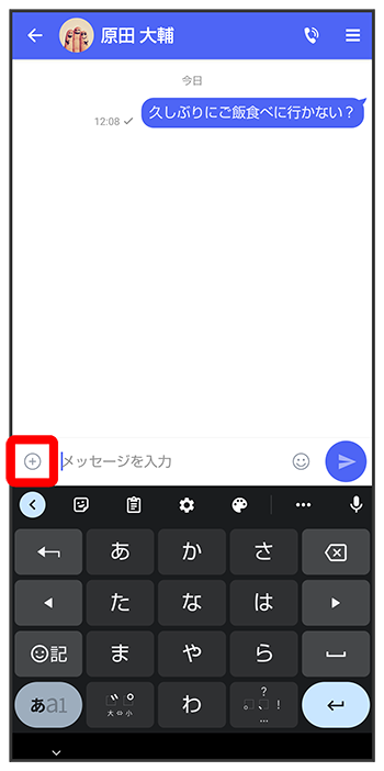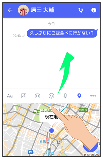 をタップすると位置情報が添付されたメッセージが送信されます。