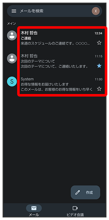 メール一覧画面が表示されます。