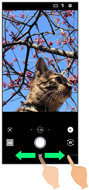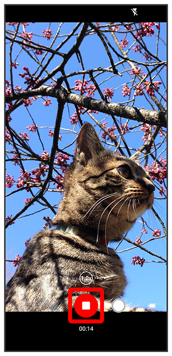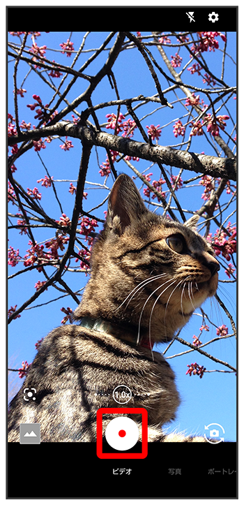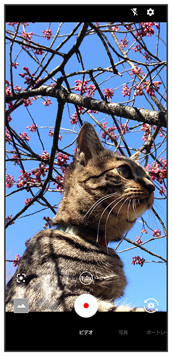 をタップ、または音量Upキー/音量Downキーを押すと写真が撮れます。また、が有効のときに動画を撮ると、笑顔、犬や猫の顔、よい構図などをAIが判断して、自動で写真を撮ります。 - が有効のときは、録画した動画とは別のショートムービーが作成される場合があります。詳しくは、「AIライブストーリーが作成したショートムービーを再生する」を参照してください。