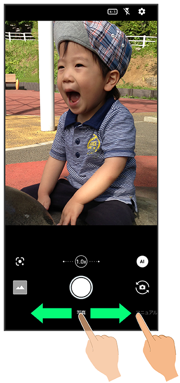 画面下部の撮影モードを左右にドラッグして撮影モードを選択