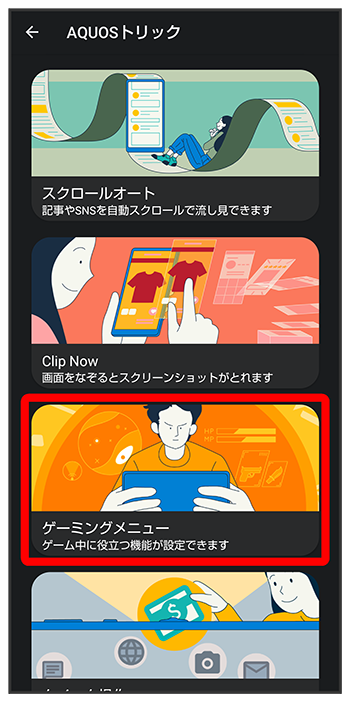 | 使い方ガイド | ゲーミングメニューの使い方を確認できます。 |
