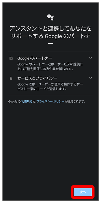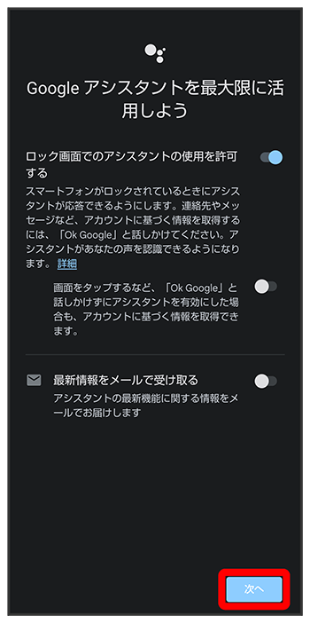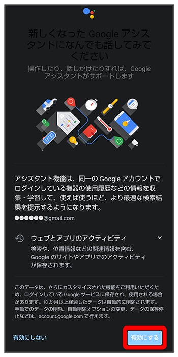 Google アシスタント機能がONに設定されます。