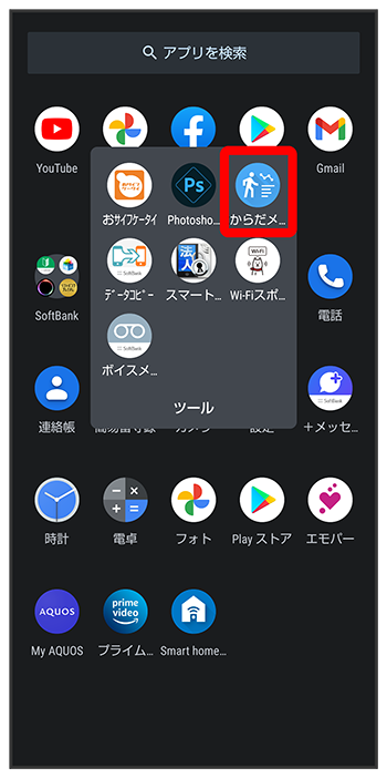 ホーム画面を上にフリック