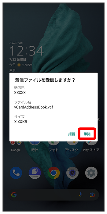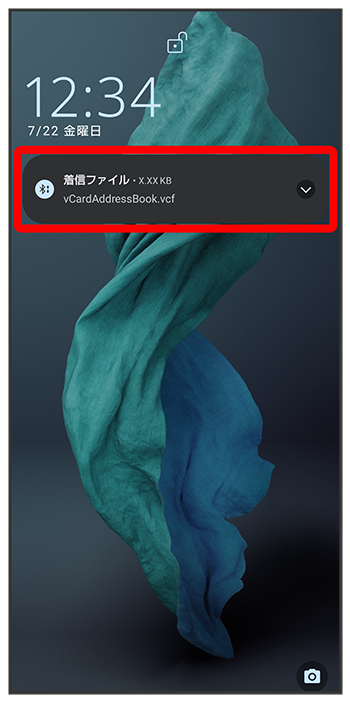 相手からデータの受信要求があると、ロック画面に通知が表示されます。次の操作を行うと、受信することができます。