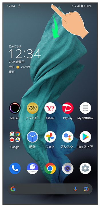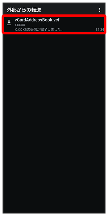 が表示されます。ステータスバーを下にフリックしてBluetooth®共有通知をタップしてください。