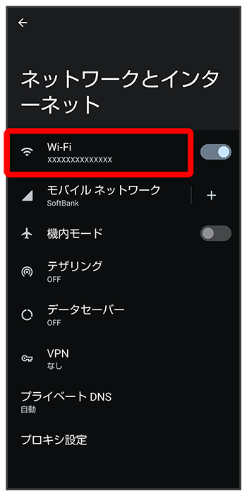 Wi-Fi画面が表示されます。
