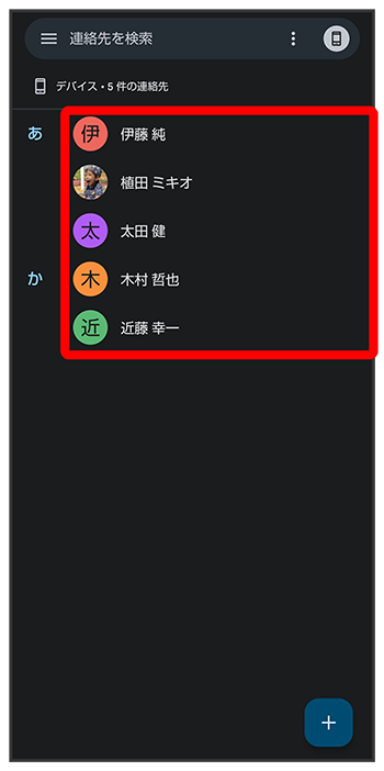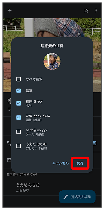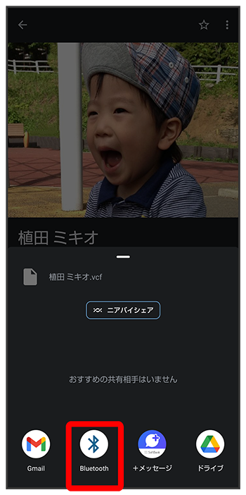 連絡帳画面で連絡先をロングタッチ送信したい連絡先をタップ(