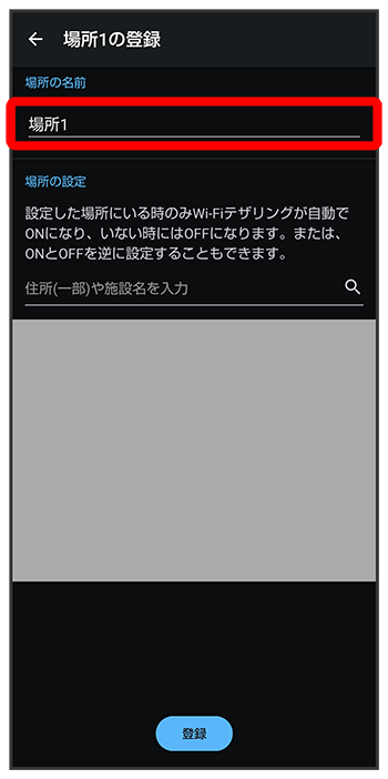 テザリングオート画面で場所の名前欄をタップ場所の名前を入力