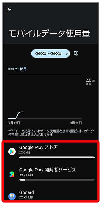 モバイルデータ使用量画面が表示されます。