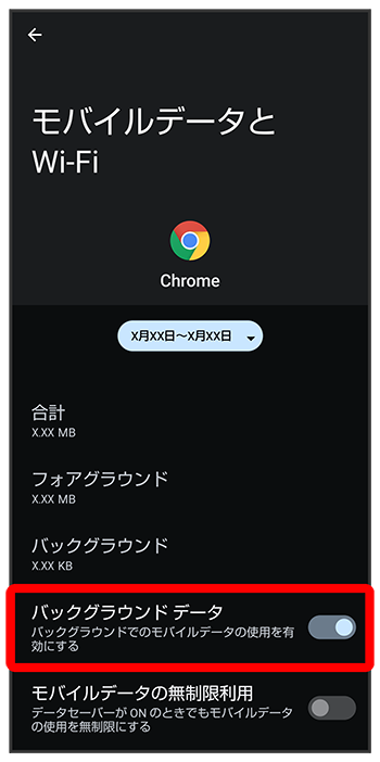 バックグラウンドのモバイルデータ通信を制限する
