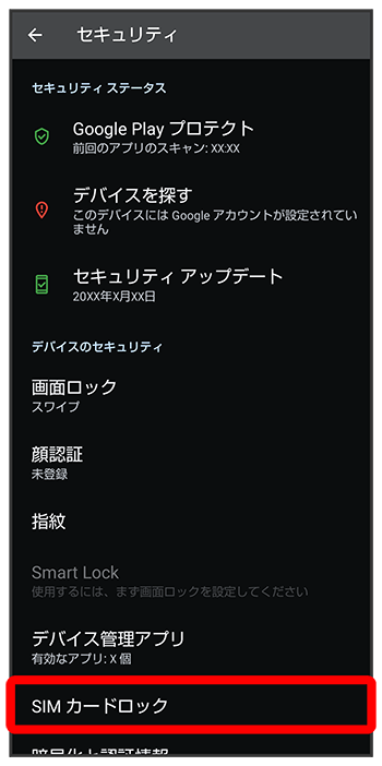 PINコードを有効にすることで、SIMカードを本機に取り付けた状態/eSIMが有効な状態で電源を入れたとき、PINコード(SIMカード用の暗証番号)を入力しないと本機が使用できなくなります。第三者の無断使用を防ぐために有効です。