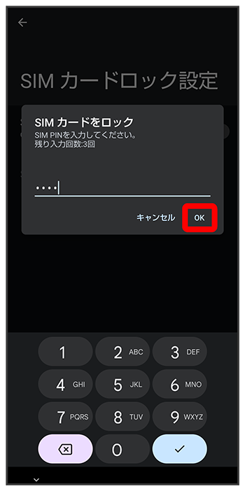 PINコードを操作するときや、SIMカードロック設定時に電源を入れたときは、PINコードの入力が必要になります。