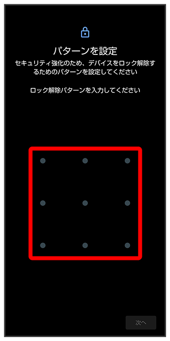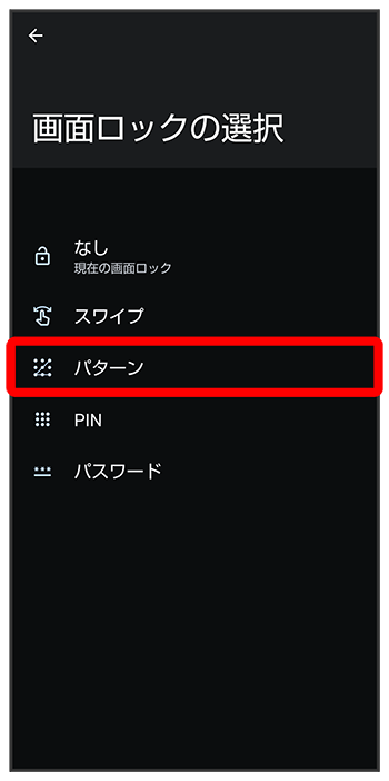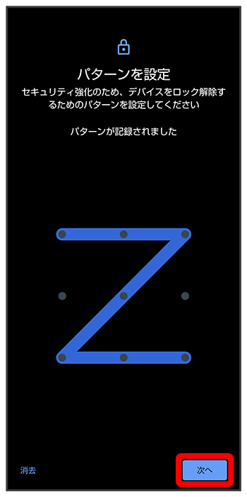 パターンを指でなぞって画面ロックを解除するように設定する